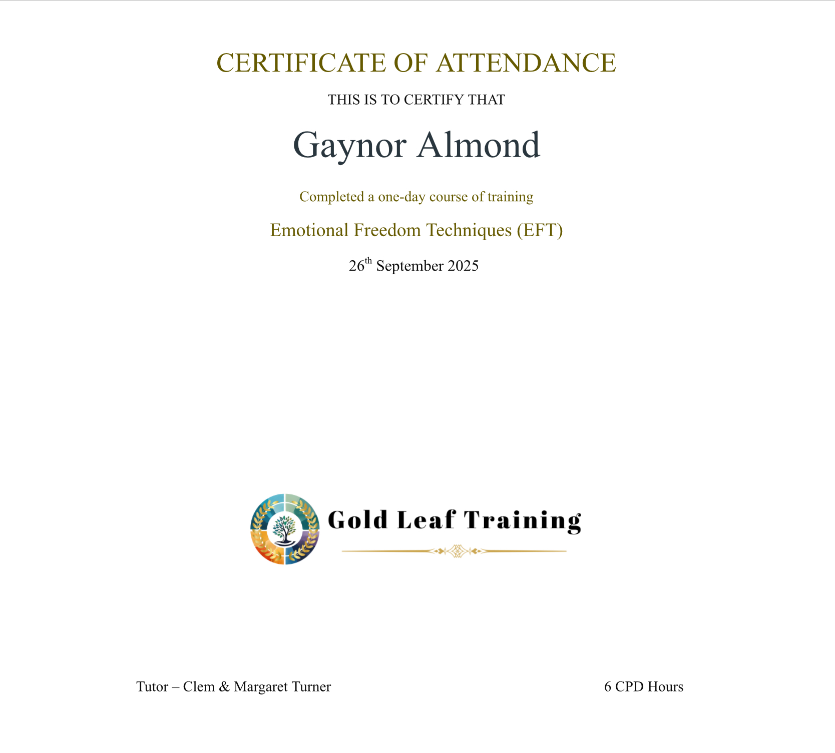 I’m Gaynor Almond, a trauma-informed holistic therapist, and a Solution-Focused Clinical Hypnotherapist (DSFH). I live in Cheshire with my husband, our two daughters and our dog Coco. I absolutely love what I do, everday I get to empower my clients to regain control over their lives and start thriving.